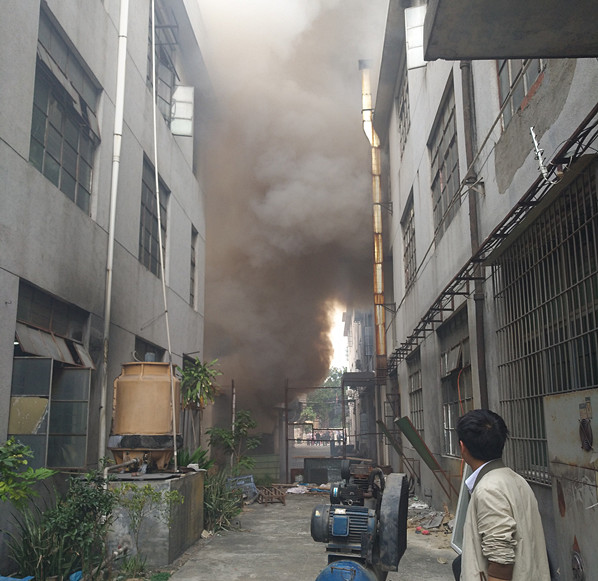 別小瞧現(xiàn)在是冬天的季節(jié)而不重視消防安全意識(shí),出現(xiàn)火災(zāi)不會(huì)因?yàn)樘鞖夂蜌夂蚨雎裕裉煜挛缛c(diǎn)半左右辦公室電腦突然斷電,正在納悶兒的我還不知道什么情況,突然被同事叫出去“快點(diǎn)出來(lái),旁邊著火了”我在意識(shí)過(guò)來(lái)。就在今天2017年1月17號(hào)在東莞市大朗鎮(zhèn)高英村高英工業(yè)區(qū)一家硅膠制品廠房燃燒起火,而正是我們公司的旁邊的一家同行,經(jīng)過(guò)了解堆放硅膠廢料和白電油的地方放置在一起導(dǎo)致出現(xiàn)火災(zāi),現(xiàn)場(chǎng)濃煙滾滾,一間單獨(dú)的房子被大火洶洶包圍,而這時(shí)我司領(lǐng)導(dǎo)冷靜的思考了以后決定帶領(lǐng)我司員工前去幫忙滅火,將火勢(shì)逐漸撲滅。